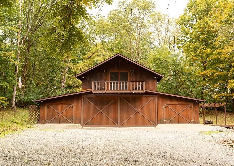 Over 11 Acres of beautiful woods! Statuesque trees surround your country setting with a large barn including 2 garages - one on each side of the barn. The upper level is your efficiency living area with everything you need. The upper level contains Bedroom area, living room area, dining area and a full kitchen with storage space. The lower portion of the barn contains the 2 garages and a salon area with the washer and dryer downstairs as well. Extremely Unique property for the person who loves the outdoors!