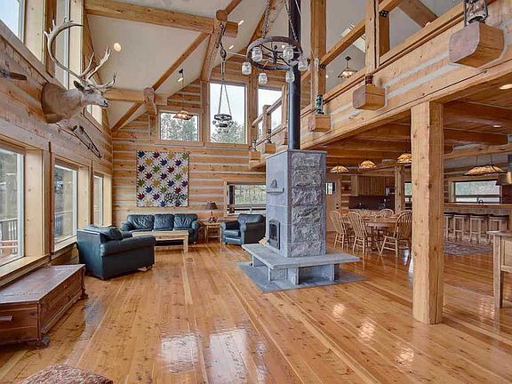Get ready for summer in this Magnificent Log Home with lake frontage on Deer Lake. The property is on nearly 1 acre with incredible panoramic views from oversized windows and wraparound deck. The centerpiece of the home is the incredible fireplace (with pizza oven) that will heat up the entire open main floor. Includes a separate 864 sq ft game room above 3 car garage that includes a bedroom, bathroom, wet bar and fireplace. Overall livable square footage is just under 5,000 feet!