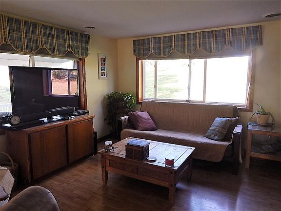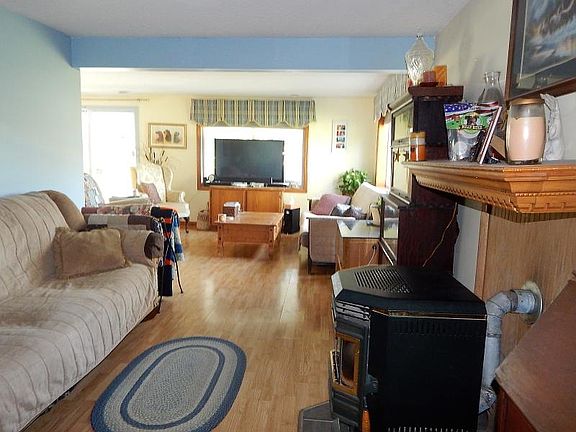 Cozy setting with lots to offer. 2 bedrooms, 2 baths, Master bedroom has bath attached and a door wall going to the acreage behind the house. Large living room with pellet stove. Nice dining area, large laundry. oversized garage with work room and a 1/2 bath. Beautiful views from the great front porch. Dog kennel fit for a king. Nice country setting!