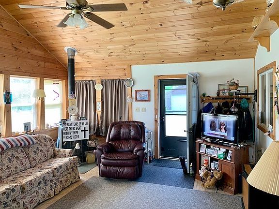 WANETA LAKE VIEWS! This extraordinary one owner home is just what your looking for. Tung and Groove 16' ceilings, thermal insulation, a/c, metal roof, all appliances stay, 2 car garage, 2 storage areas, 1 shed, and an open deck. Amazing views of the lake, excellent location, just 2 minutes to the public boat launch and hunting lands. Enjoy this peaceful spot year round on 4.8 acres! Furnishings may be included. WELL BUILT ON A FANTATIC SPOT!