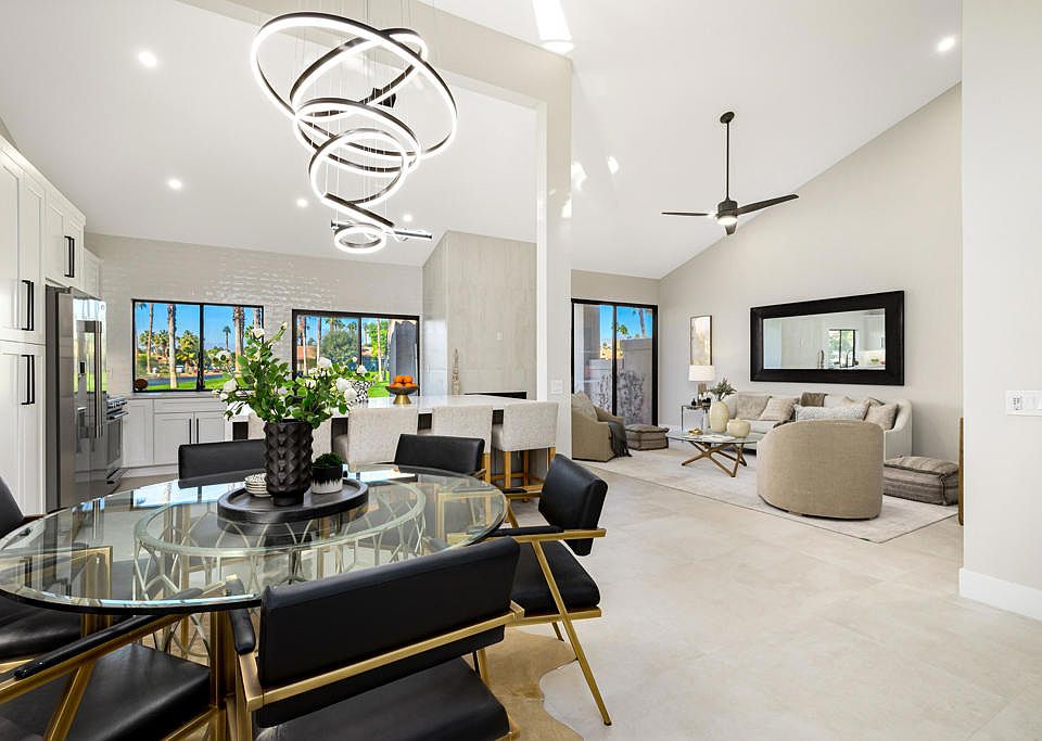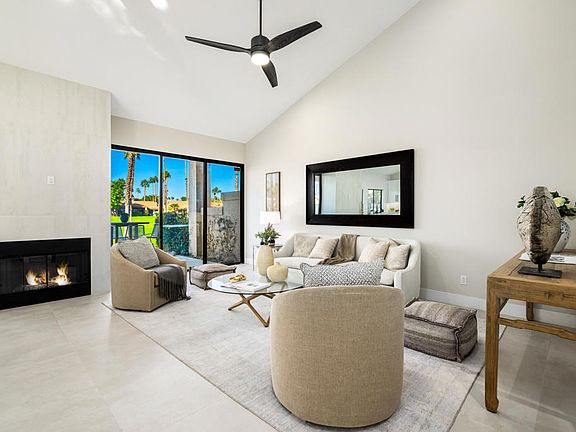 ***VERY RARE Short term rental friendly condo within Premier Country Club!!! Welcome to 38771 Nasturtium, a completely remodeled, luxury 3-bedroom, 3-bathroom condo in the highly sought-after Palm Valley Country Club. This exquisite home offers the perfect combination of modern elegance and relaxed desert living, with every detail meticulously updated for those picky buyers who are wanting something move in ready! Step inside to discover an open-concept floor plan with high vaulted ceilings and abundant natural light, showcasing high-end finishes throughout. The spacious living and dining areas are perfect for entertaining, with sleek, contemporary flooring and designer fixtures. The gourmet kitchen is a chef's dream, featuring top-of-the-line stainless steel appliances, custom cabinetry, and beautiful quartz countertops that make cooking a pleasure. Enjoy the outdoors from your private patio, which overlooks the lush fairways and manicured landscaping of the golf course, providing the perfect backdrop for relaxation or alfresco dining. This condo is perfectly located within close proximity to the Clubhouse and the golf practice area, allowing for easy access to world-class amenities, including golf, tennis, fitness centers, and resort-style pools. Short-term rentals are permitted, offering the flexibility to enjoy this luxurious property as a vacation retreat or an excellent investment opportunity.