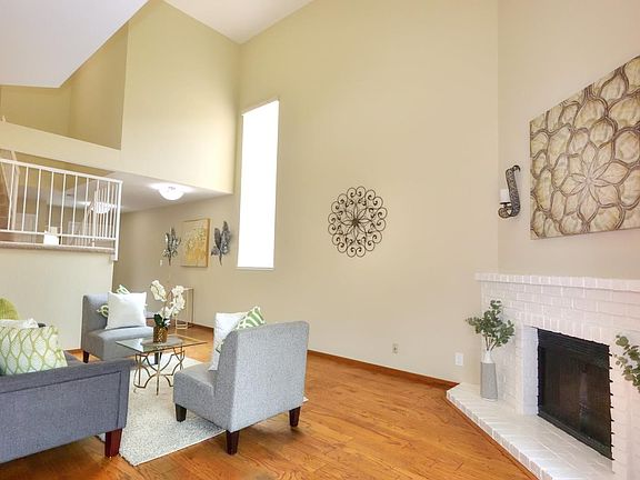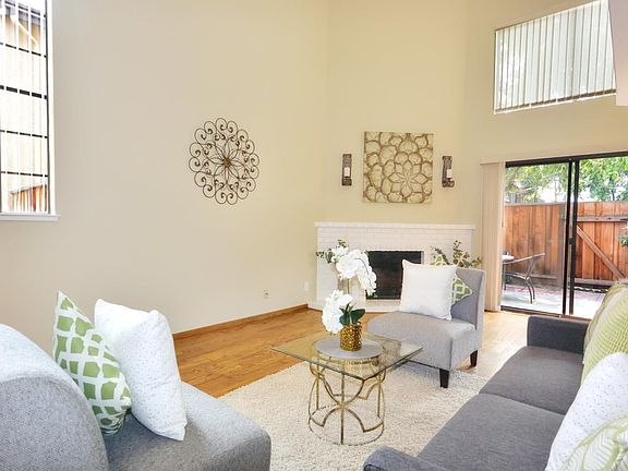 Gorgeous Mission Glen townhome-style condominium! Spectacular 2-story floorplan, with new custom interior paint throughout. Custom tile and rich hardwood flooring, plus new plush carpet. Remodeled kitchen and baths feature stainless steel appliances, quartz countertops, designer cabinets with pull-outs, and recessed lighting. Breakfast bar and spacious dining area adjoin the formal living room with slider to private patio. Vaulted ceilings with plenty of natural light, plus wood-burning fireplace with gas starter. Inside laundry, washer/dryer included. Serene master bedroom with slider to balcony and en suite bathroom with updated light/water fixtures. Mirrored closet doors, plus bonus walk-in closet in second bedroom. Attached 1-car garage with automatic roll-up door. Additional storage throughout, including attic and under-stairs closets. Well-maintained community, $365 HOA dues per month include pool, clubhouse, exterior landscape, and maintenance of all common areas. MUST SEE!
