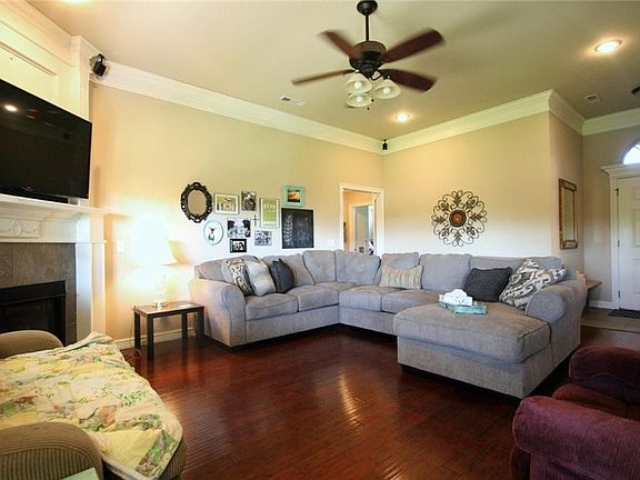 Chic one-level home on huge lot! Built beautifully with large living, formal dining, breakfast area, office/den, great master w/ jetted tub & walk-in shower. Crown molding, surround sound both inside & out, keyless entry, & bamboo floors. Covered patio w/ fan, beautiful landscaping, pergola showing casing view, storage building, & raised flowerbeds/garden.