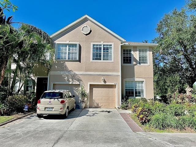 Spotless light and bright, 3 bedroom/2.5 bath townhouse. Fee Simple ownership. Maintenance free living with low monthly fee of $300/month. This end unit with 1 car garage loaded with extra storage shelving is a plus. Additional guest spots across from unit. Luxury Vinyl Plank Flooring throughout downstairs. Carpet throughout upstairs. Screened lanai plus paver patio overlooking retention pond gated security entrance. Pest management inside and out. A/C 2017