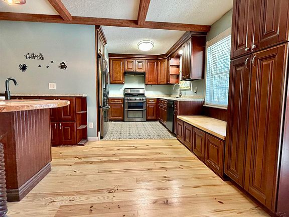 Southside - 4bd/3ba Full Brick home located on a dead-end street - Spacious 1.4 ac lot - Move in ready completely updated w/ Modern Southern charm - Open floor plan - solid pine flooring - custom built in cabinets in the entry include a bench, coat rack & storage - Kitchen has solid wood cherry wood cabinets w/ stainless steel appliances, built in spice rack, gas stove, walk in pantry/ laundry room w/ sliding barn door - Matching island w/ maple countertop & a copper sink - large Master bedroom with ensuite that has His/Hers Vanities, Dual shower heads, makeup vanity & a bidet sprayer - lower level walk out has new windows - Central Vacuum system - Wrap around deck - NEW HVAC & SO MUCH MORE