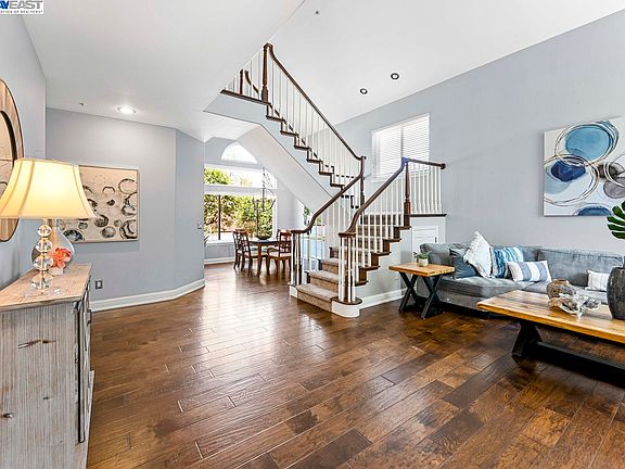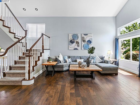 Welcome to Portola Glen-Vintage Collection built by Warmington Homes. This open floor plan features 5 bedrooms, 3 full baths, beautiful hardwood floors, a dramatic centerpiece stairway, vaulted ceilings, new carpet, and new Anlin dual pane windows. The beautiful, upgraded kitchen includes shaker cabinets with soft close hinges, granite counter tops, a stainless steel sink, and some upgrade appliances. The downstairs full bath is also upgraded, which pairs wonderfully with a downstairs bedroom for a guest or family member. Upstairs, a bathroom connects two bedrooms and features upgrading flooring, refinished cabinets, and new faucets. A bonus room upstairs could be imagined as a special feature office/media/playroom. If extra closet space in the primary suite appeals to you, the extended closet with additional walk-in is a must see! The primary suite also has plenty of light and sitting area to enjoy the afternoon sunlight. The exterior was painted a year ago along with newer landscaping and perhaps the best of all, side yard access for your RV/Boat!