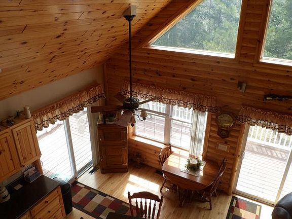 2007 construction, open floor plan, pine interior, oak hardwood floors in living/dining/kitchen, pine custom cabinets in kitchen, ceramic tile flooring in 3/4 bath and entry, fireview wood stove in living, A/C, LP auto generator, full basement, attached garage, 24x32 detached drive through garage/workshop, garden area, landscaped, near Cedar Valley Golf Club. Move-in ready!