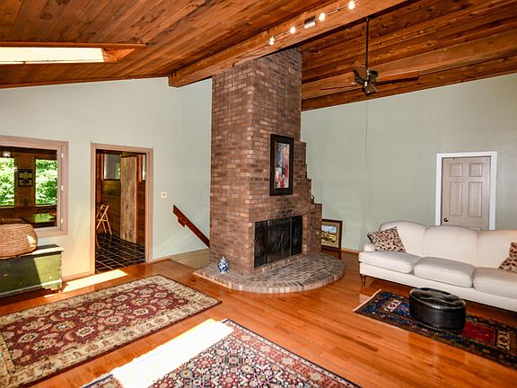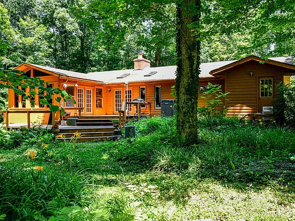 Custom home on an amazing wooded 5+ acre lot. So many possibilities with this location as it is located right next to Mill Creek Golf Course. This unique custom built one owner home has vaulted ceilings, a fabulous great room with a two story freestanding brick fireplace, skylights and hardwood floors. Island kitchen plus an eating bar and SS appliances. 16'x16' Florida room can be used all year. 1st floor laundry/mud room with access to deck. Primary bedroom with full en suite. 2 guest bedrooms, 2nd full bath, and finished basement with 4th bedroom, rec room and workshop. Newer HVAC plus a wood furnace. 20' x 35' attached carport plus a 25' x 44' detached heated workshop/garage. City water. Next to a golf course. Stream on site. Original owner. Make this Your Dream Property!!!