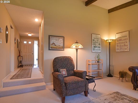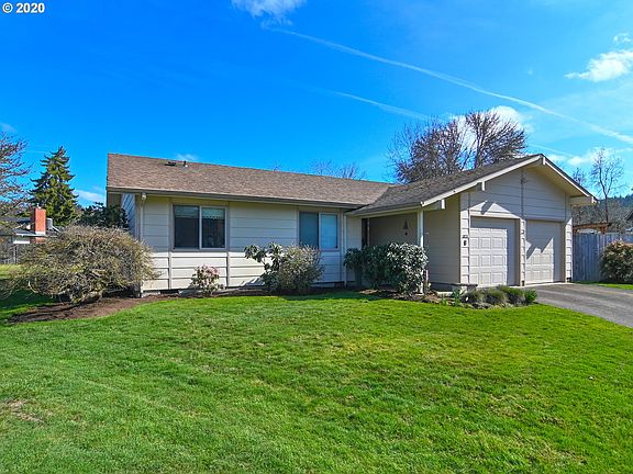 Meticulously maintained single level gem in SW Eugene! Marble tile in master suite, porcelain tile in mains. New bathrooms w/cultured marble! Kitchen has new counters, cabinets w/pullouts & new dishwasher. Dining off kitchen leads to formal living with beautiful beamed ceilings & pellet stove with thermo-insert. Living room takes you to wonderful backyard via french doors. Enjoy gardening in the raised beds and perfect entertaining on deck with a new awning! 2car garage & 10 year new roof.