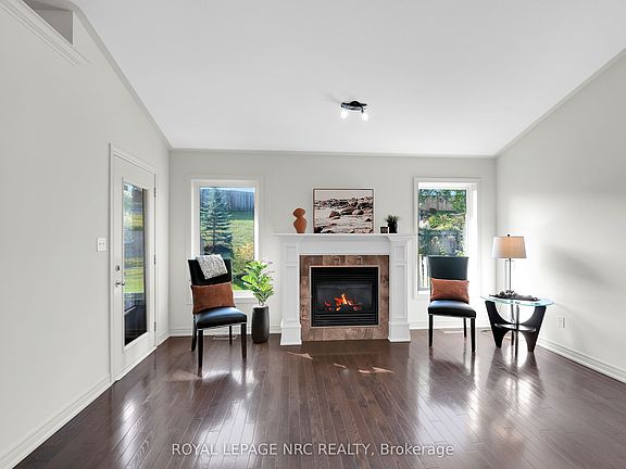 Welcome to this charming freehold bungalow townhome with attached garage, ideally located in the friendly "Village Creek" community in quaint Stevensville. With no rear neighbors backing onto you, you'll enjoy some privacy in a home designed for comfortable living. Bright, open-concept great room and dining area, complete with a cozy gas fireplace, vaulted ceiling, wood floors and garden door to back covered concrete porch. The well-designed kitchen features a convenient U-shaped counter, a pantry closet, and a built-in dishwasher, making meal prep a breeze. The main floor also includes two spacious bedrooms with updated broadloom in 2022, a main-floor laundry, and a four-piece bathroom. As you go down to the partially finished basement, you'll notice the basement bannister has been opened up at the bottom to make the family room feel more open. The spacious family room and a three-piece bathroom, is a nice for guests or a quiet retreat. Still lots of room for storage in the basement. Enjoy your morning coffee on the covered concrete rear porch, an ideal spot for relaxation. The views of greenery form the back porch is just lovely. This lovely home is a short walk to local parks, conservation areas, shops, and restaurants. Plus, you're only a short drive from downtown Ridgeway, Costco, the new hospital site, the US border, and the beautiful shores of Lake Erie. Embrace the Niagara lifestyle with easy access to wineries, golf courses, nature trails, and more.