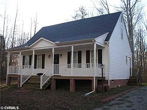Don't miss this quality built vinyl sided easy maintenance cape on 1.62 private wooded acres down a long driveway out of sight of Maidens Rd. The1st floor master bedroom has a walk-in closet & private full bath & a ceiling fan. Also on the 1st floor is a foyer area, living room with crown molding, an eat-in kitchen with walkout bay window eat-in area, pantry, stove, dishwasher, a turned back stairway, a hallway to the master from the living room has a half bath and laundry closet. Upstairs 2 nice bedrooms, a full bath, linen closet and walk-in attic storage. Enjoy sitting on your country front porch surrounded by nature, or go just 2 miles to Maidens boat landing to enjoy the James River.