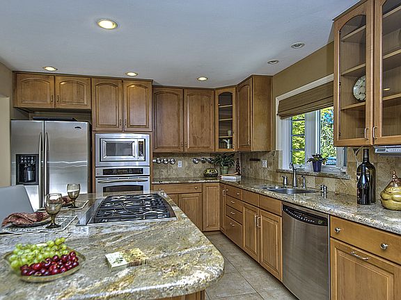 Stunning Colonial style home with grand entrance and resort style backyard in desirable neighborhood. The home has fabulous updates and includes a chef's kitchen with large center island, granite counters, stainless appliances, walk-in pantry, sunny breakfast area and built-in desk. Open kitchen and family room features Anderson sliders to large newly installed deck, beautiful American cherry wood floors and designer lightning.