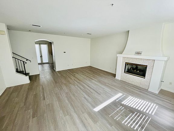 This is the turnkey end unit condo by the beach you have been waiting for! As you make your way through the entrance, you'll notice the expansive living room complete with a gas fireplace. The guest bathroom is conveniently located next to the entrance, and a convenient storage under the stairs. The Kitchen comes complete with a refrigerator and matching black appliances. There is a bonus room accessed through the kitchen that can be a den, office, and limited only by your imagination. This home offers two upstairs large bedrooms with their own bathrooms. The main bedroom has a massive walk in closet, the main bathroom features its separate tub and shower, dual vanity, and separate toilet room. The guest bedroom is spacious and also features a wall closet, guest bathroom with a shower. The laundry room is located upstairs and comes complete with washer and dryer installed. All bedrooms, upstairs halls, and stairs feature brand new carpet with an upgraded pad for comfort. Extras include: New interior premium paint, all new luxury vinyl plank flooring throughout, new custom blinds on all windows and glass doors, new carpet with upgraded padding, two parking spots in the parking structure, and even a storage closet. The Plaza Almeria Community is a few steps from all the great shops and restaurants on Main St and a block from the Huntington Beach Pier. Trash is included. No smoking of any substances in the property or patio.