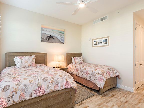 Fall in love with the amenities of the property and convenience to Anna Maria Island Beaches in this brand new 2 bed/2 bath penthouse condo! Enjoy coffee and a beautiful sunrise on the large sectional sleeper sofa with a relaxing chase next to the stunning top floor lanai view. The master suite is equipped with an adjustable bed for relaxing while winding down after a long day in the sun! The spacious second bedroom offers a full and a twin size bed. The kitchen is fully stocked with cooking essentials, and both suites have custom built closets that offer a home-like feel for longer term renters! The property has marina access and is conveniently located across the bridge 1.6 miles from Manatee Beach. Outdoor activities abound with the bike and walking trails of Robinson Preserve. Enjoy the heated swimming pool, splash pad, bbq grills and playground in addition to all that AMI has to offer with its sugar sand beaches and dining opportunities. Gated community with covered parking and an elevator. Lease term minimum 12 months. Tenant responsible for gas, electric, and cable. Pets are extra $500 deposit and $250 per month additional rent.