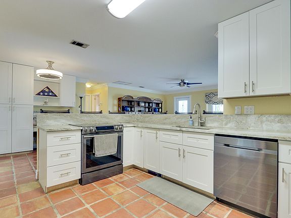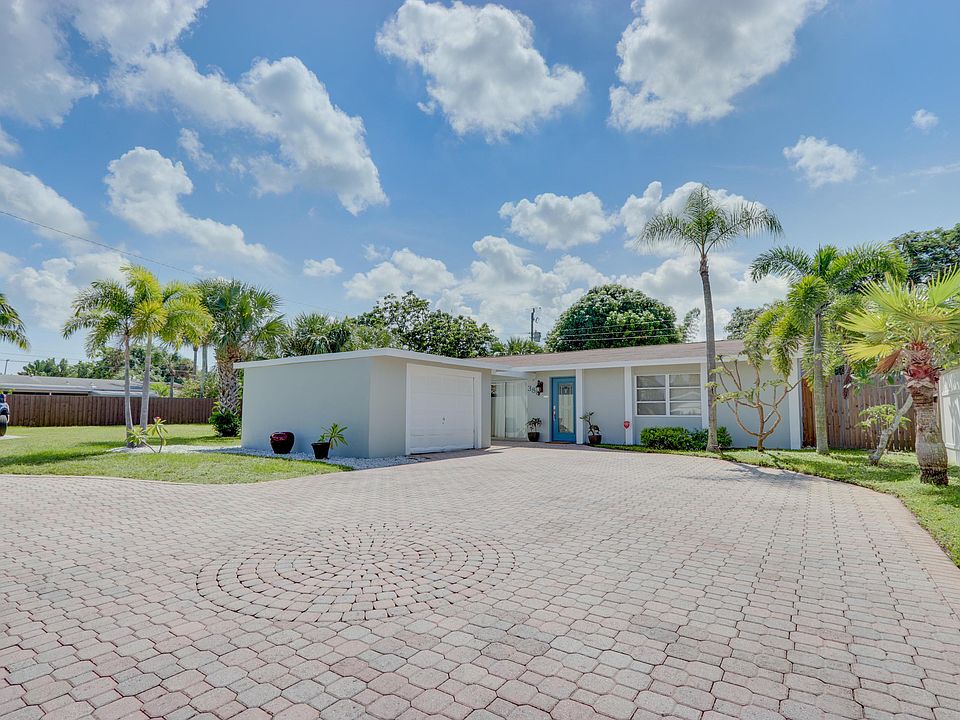 Welcome to East Palm Beach Gardens, and no HOA! This home is just off of A1A and offers CBS construction, 3 bedrooms 2 baths and a pool. An oversized Paver circular driveway greets you. The updated kitchen has white shaker cabinetry, an open island bar, and quartzite countertops. The appliances are newer and the AC was just installed, 10 year warranty to be transferred to the new homeowner. There is tile throughout the main living areas, and the home has been freshly painted inside and out. The community is very well maintained, just a few miles to PGA mall, dining, and the beaches! Schedule your preview.