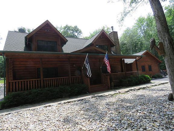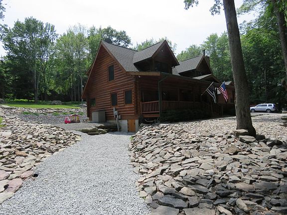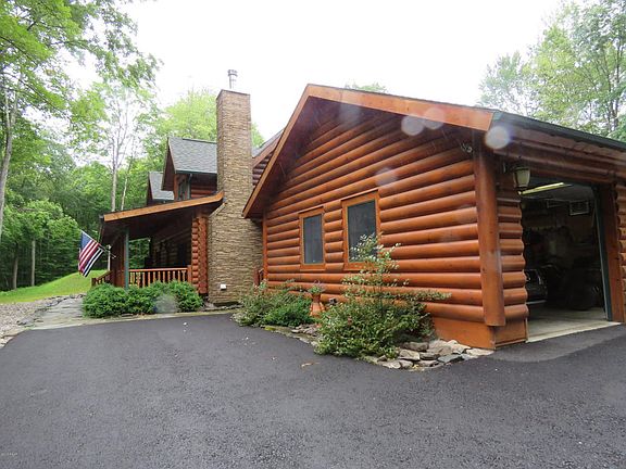 Enjoy the tranquil peacefulness of this Private Mountain Log Home, Magnificent in design and impeccable in taste and quality. Built by Estemawalt Log Homes specializingin log homes since 1883. Features 10'logs, teak floors, knotty pine walls, natural stone elements through out, floor to ceiling stone fireplace and gourmet kitchen. Master bedroom suite on the first floor, two bedrooms plus a loft on the second floor. Fire pit for BBQ's and gatherings with built in ''Garden Steps''.Just minutes to Lake Wallenpaupack and Historic Village of Hawley. Life is short! Enjoy it!