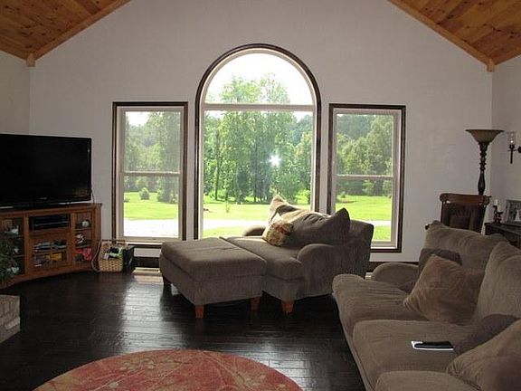 An upscale, country setting accompanies this 3BR, 3 1/2BA home on 19.07 acres. The main level offers 9ft ceilings, hand scraped hdwd floors, & solid wood doors. Extra large living rm features pine tongue & groove cathedral ceiling, large picture windows, & a floor to ceiling brick wood burning fireplace. Kitchen/dining combo w/custom Alder wood cabinetry, granite countertops, & SS appl. MBR w/lavish MBA: walk-in tiled shower, soaking tub, double vanity. All BRs w/walkin closets. Sunroom on main.
