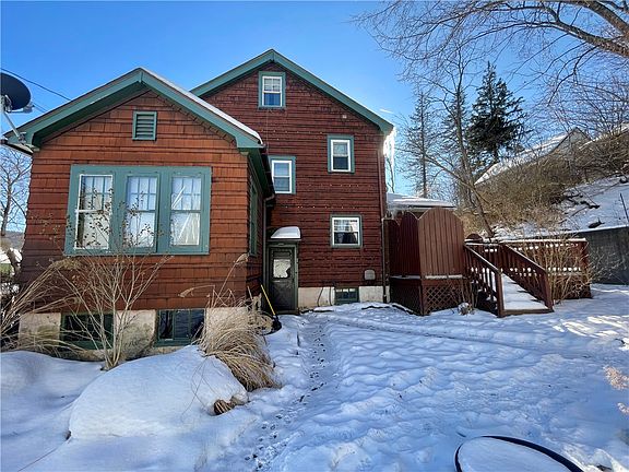 Conveniently located charming home with unique amenities just minutes from downtown Bradford. Hardwood flooring and many built-in features add to the original charm of this home. Large Living Room enhanced with a fireplace, a vestibule, and Screened-in Side Porch. The first floor also features a Half Bath off of the Kitchen, a formal Dining Room, and potential Bedroom/Office on the first floor. Upstairs consists of three Bedrooms and an updated Full Bath. The walk up attic has finished living space. Full Basement with Laundry and an adjacent cold storage room. Back deck is accessed off of the extended Kitchen from the sliding glass door, also side yard access is available. Detached two stall Garage with ample storage above.