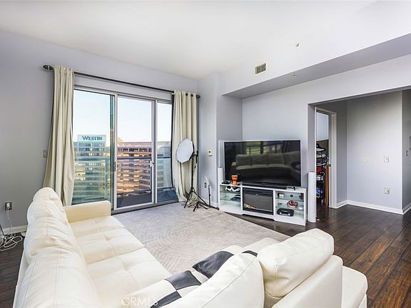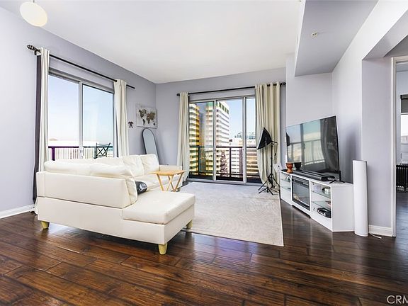 JUST REDUCED! Enjoy the luxury high-rise living from the 16th floor of the Aqua. Take in panoramic fountain and city lights views from this lovely North West corner unit looking over the fountain and Performing Arts Center. This popular model is light bright with views from every room and wrap around balcony. Spacious well designed modern condominium with large walk-in closet, central air conditioning system, full size washer and dryer inside of unit for your daily convenience. Comes with rare PRIVATE GARAGE and one extra parking space. The building offers 27/7 concierge, inside manager, basic Frontier internet, water, trash and sewer services included in HOA dues, fitness center, pool, sauna and a community room for gatherings, BBQ area, and business center. Best location in the vibrant Downtown Long Beach, close to gourmet restaurants, trendy shops, museums, beaches, Shoreline, The Pike, Convention Center, Aquarium and so much more.