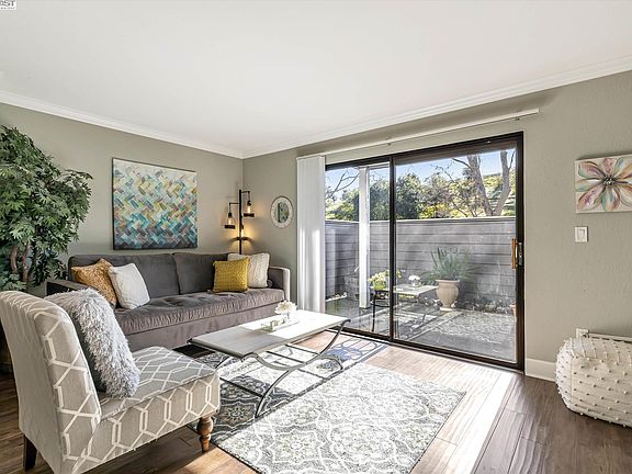 This stunning 1 bedroom, 1 bathroom condo boasts ample space and is filled with modern updates. The bathroom showcases sleek travertine tile floors and elegant granite countertops, while the updated kitchen features gleaming laminate floors, stainless steel appliances, and stunning maple cabinets, all accented by granite countertops. A warm and inviting living room offers a cozy wood-burning fireplace, and in-unit laundry adds to the convenience. Enjoy designer paint throughout and relax on the charming patio, which offers additional storage space. This gated community offers an array of amenities including two sparkling pools, a gym, and a tennis court. Plus, the location couldn't be better, with shopping and dining options such as Whole Foods, Trader Joe's, and the San Ramon City Center all just a stone's throw away. Don't miss this opportunity to call this delightful property your new home!