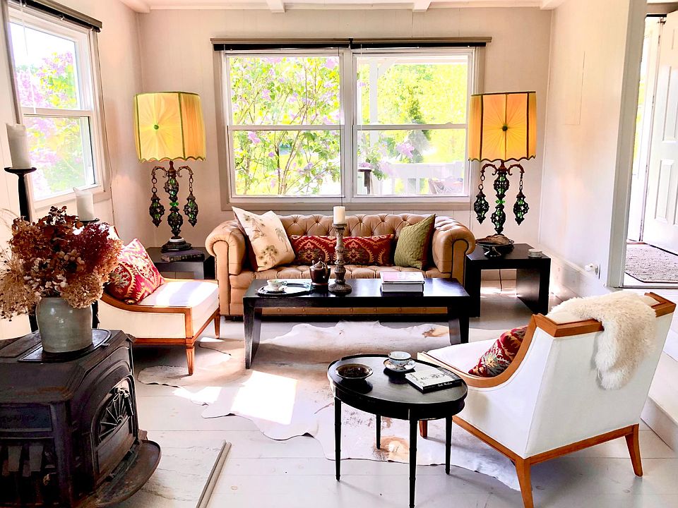 Furnished Apartment for Short- or Long-Term Rental. This tastefully furnished and accessorized 2-bedroom apartment with an open floor plan offers a nurturing atmosphere. Situated within a two-unit cottage on a picturesque 15-acre rural property complete with a old farmhouse, two barns, and a silo. This residence enchants with its rustic character. Designed in an eclectic style that artfully blends vintage, antique, and modern furniture and accessories, the apartment is perfect for those who appreciate design and detail. The master bedroom features a comfortable king-size bed, while the second bedroom/study includes a desk and a versatile twin bed/sofa combination. A dining area and a welcoming eat-in kitchen provide spaces to gather and entertain. The sunken living room is both spacious and inviting, with a woodstove that promises cozy winter evenings. A separate laundry room with a washer and dryer adds convenience to everyday living. Step outside to your private back porch and lawn, ideal for unwinding with a drink or enjoy the shared sunset-view pergola, where you can take in breathtaking vistas of the western Catskill Mountains. Conveniently located, it's just 30 minutes from Albany, 20 minutes from Hudson, and only a few minutes away from the charming, historic Kinderhook Village and the Albany-Hudson Electric Trail. NO PETS. Credit - and Background check required. Electric heating not included. Video walkthrough available upon request. Fully furnished/accessorized. Wifi, water, waste removal included. Heat (electric) not included. NO PETS. Video walkthrough available upon request. Available short or long term.