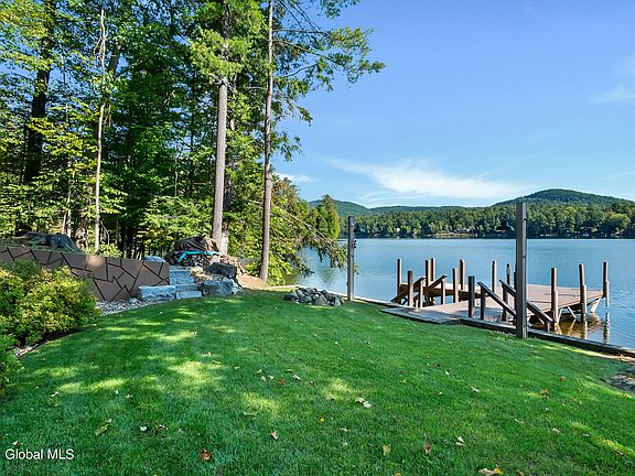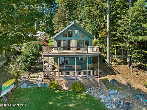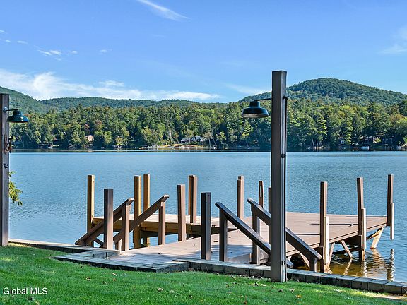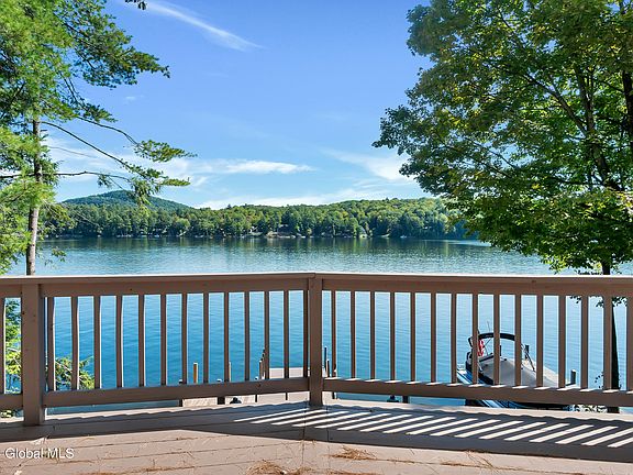 Year-round lakefront Chalet in the foothills of the Adirondacks. 3 bedroom 2 full bath, loft, with finished walkout lower level on 50 ft. of direct shoreline on Lake Hadlock. L-shaped dock can fit up to a 28ft Boat. The main floor living offers a free-flowing style, vaulted ceiling, lake views, sliders leading to the lakeside wrap-around deck, dining room, kitchen, living room, 2 bedrooms, & 1 bath. The loft has beautiful views of the lake, & main living space. Lower level is tastefully finished with a living room, game/rec area, bedroom, full bath & laundry/utility room. Comes Furnished. Has an Artesian Well, & new roof. Hadlock is refreshed by a mountain stream sitting just southeast of Lake George. It spans 220 acres & is 4.6 miles in length. Only minutes to many of the LG Mtn Peaks.