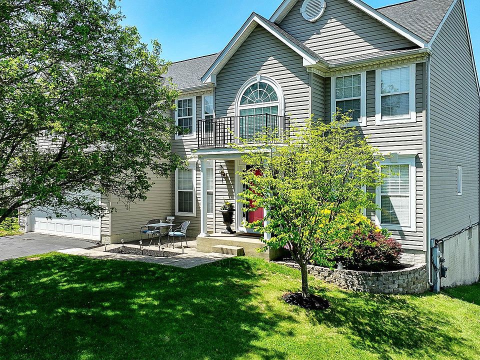 Fabulous 2 story colonial with almost 3500 finished sq ft above grade! Well maintained and is beautifully decorated! The spacious main level includes a family room with gas fireplace, an office, and a 4-season sunroom as well as the living room, dining room, kitchen, a half bath and a mud room/laundry room that connects to the 2 car- garage. From the beautiful wood flooring, throughout most of main level, the granite countertops, the stainless-steel appliances and the designer style range hood this kitchen boasts beauty and functionality. Take your morning coffee in the breakfast area, the sunlit sunroom or step outside onto the massive deck and soak up the vitamin D. Upstairs, you'll find the primary bedroom with a sitting room, a full bath, a walk-in closet and 2 additional closets, plus 3 more spacious bedrooms and another full bath. The lower level has an L- shaped rec room with LVP flooring, and a sliding glass door to walk-out to the backyard and patio under the deck. Need to get your steps in? You can do just that on the paved walking path behind the property or walk to the community playground.