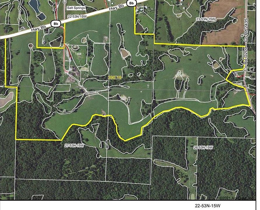 388 Acres Randolph - The farm is a mixture of open pasture and hay fields with the remainder being timber/brush. 276.76 acres are being put into row-crop in 2021 paying $140/tillable acre. Majority of the wooded acres are located along the southwest corner. Turner Creek runs through the southwest corner of property. There are several older buildings on the property located on BB Hwy Huntsville, MO $3250/acre. Subject to final survey.
