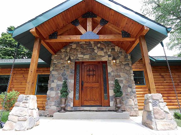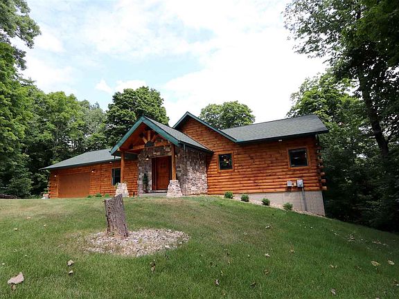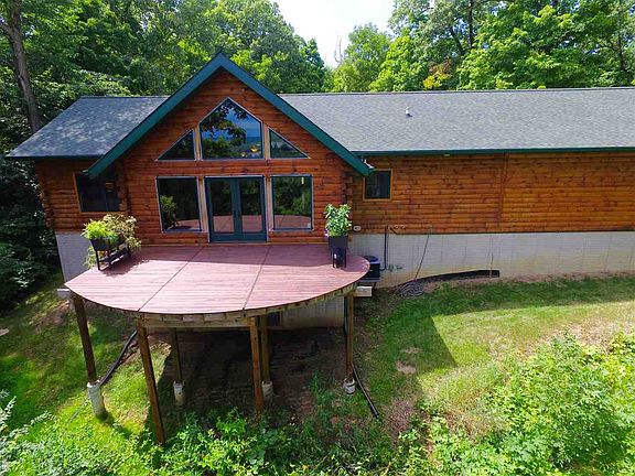 This home will be like vacationing year round. Enjoy all the seasons from the huge deck or from most rooms in the home. Log cabin sitting on approx 12 acres of wooded paradise. So many extra's in this custom designed home including open floor plan, vaulted ceilings, large plank pine flooring and exposed collar ties. Perfect for entertaining around the large stone fireplace with built in shelving and adjusting mounted TV, which stays with the home. Cooks dream kitchen with top of the line features, including pot filler, & soft closing drawers. Full walk out basement.