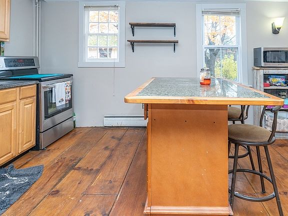 Looking for a New England Getaway? You will feel the charm in this rustic cape nestled near the Chesterfield Gorge Reservation. This home has had many updates while keeping the country beauty. The main living area has an open floor plan which features wide plank pine flooring. Let the wood-burning stove warm you up on those winter nights. With the open kitchen, the main floor is great for entertaining. The exposed wood throughout the home is a great design feature for decorating. The second floor was a loft but has been converted into 2 bedrooms. The dual fuel heating system allows you to heat with either wood or oil. The roof was redone in 2022. Make this home yours today and enjoy the area's picturesque landscape.