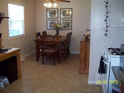 Nice hardwood floors throughout. Kitchen/Dining room is huge with ample amount of cabinets, 3 good sized bedrooms, master bedroom has walk-in closet. Half bath doubles as a laundry room. New driveway big enough for 3 cars across. Upgraded newer vinyl replacement windows. Storage shed, new deck and stone patio in back (fenced) yard. C/A unit has been replaced in the last few years. 2 car garage is a little deeper than most and has been converted into 2 rooms with heat and carpet, for additional living space. The seller is willing to convert garage back into a garage with acceptable offer. Entire interior painted with new crown moulding 2010. New roof 2010 (complete tear-off, replace all wood sheathing). New 100K BTU furnace 2010. Main bath upgraded with furniture style vanity with granite top and ceramic floor. 1 year Home Warranty. 3% closing costs for buyer.