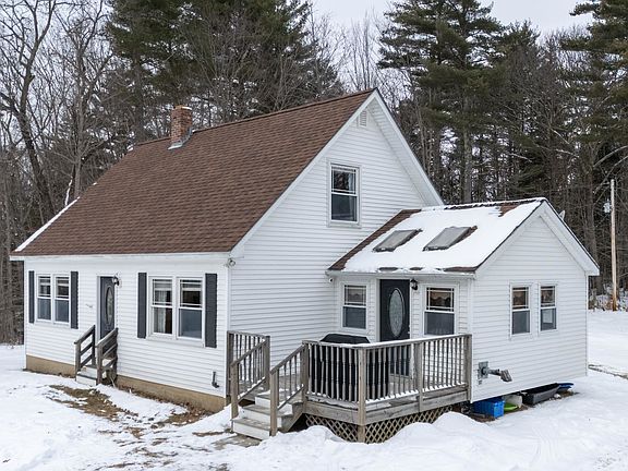 Welcome home! This charming updated Cape is nestled on 5.6 acres of serene, private land and blends comfort, style, and practicality. The open-concept first floor features beautiful vaulted ceilings that amplify the sense of space and light, while hardwood floors in the dining and living areas add warmth and character. The well-appointed kitchen, complete with an island, serves as the heart of the home—perfect for cooking and gathering. A versatile bonus room makes an excellent home office or playroom, and the first-floor bedroom adds convenience and accessibility. The pellet stove not only adds charm but is also an efficient secondary heating option. A full bathroom with laundry completes this practical main level. Upstairs, two spacious bedrooms provide a comfortable retreat. The dry basement offers ample storage space, complemented by a backyard shed for additional storage. The expansive yard is perfect for hosting gatherings, whether for cookouts, lawn games, or evening bonfires. Conveniently located just 20 minutes from the Tilton Outlets and Downtown Laconia, and only 25 minutes from Downtown Concord, this property offers a perfect balance of privacy and accessibility. Don’t miss this fantastic opportunity! Showings begin on Friday, 12/6. Join us at the open houses Saturday (12/7) and Sunday (12/8), both 10:00am—12:00pm.