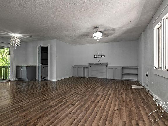 Remodeled house in great location just off Fall Creek Rd. Completely new kitchen & updated bath on first floor, along with first floor laundry room & pantry. New flooring throughout. 2BR on main level and 2 on lower level. Great room with fireplace & built-ins on main level and family room on lower level with French doors to outside. TWO decks overlooking wooded, fenced backyard, bottom deck boasts a porch swing and bar area. Single car, extra long garage with workshop & storage space. Double circle drive, plus additional parking for an RV.