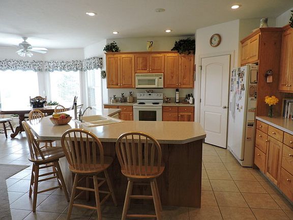 Beautiful fully bricked home on beautifully landscaped lot. Large concrete circular drive way with plenty of parking. Formal Living room just off the entry way. The Great Room/Kitchen area is spacious and open. In the corner of the room is a rocked gas fireplace with space above for T.V. The Dining area leads out to the deck that overlooks the gorgeous back yard with garden shed and large garden area, bricked patio with pond, cement curbing, 3 rail fence, and full sprinkler system. The main floor has 2 big bedrooms and 2 large bathrooms. The master suite has large walk in closet and the master bath has large garden tub and separate shower. In the basement there is a full kitchen, family room, with bay window. Walk out basement leads to the gorgeous backyard. There is a large storage room and cold storage room. There are 2 large size bedrooms and a full bath. There is also a craft/wood working room that has its own separate door leading outside. This meticulous home is ready to move in! Come take a look today!
