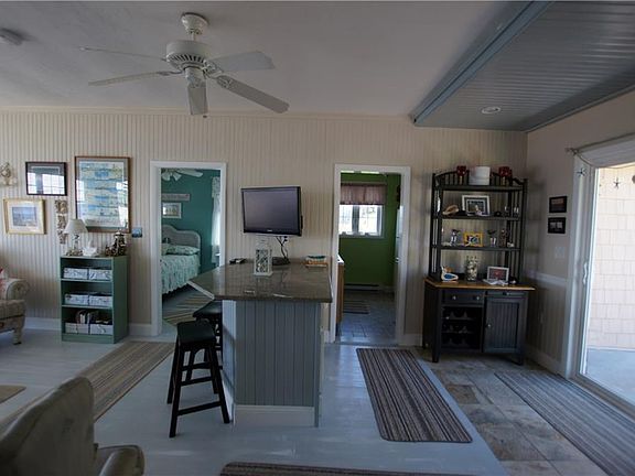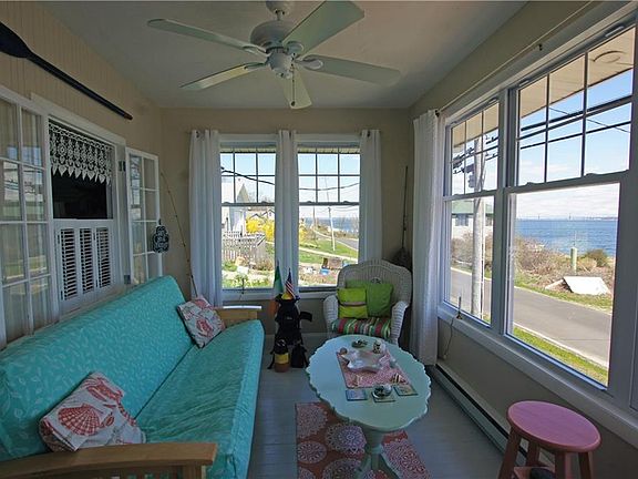 Beautiful renovated bungalow with unobstructed views of Narragansett Bay and Prudence Island Lighthouse. Highly sought out neighborhood - less than 5 minute walk to Sand Beach, dock, & lighthouse. Home was recently renovated with Anderson windows & doors, maintenance free vinyl siding, fully insulated, new front porch with composite flooring, designer railing & Sunsetter awning, & brick patio with fire pit. Open floor plan with 3 bedrooms and large great room with dining and living spaces. Outdoor hot water shower & dressing room. New appliances. Electric baseboard and Harmon pellet stove for year-round living. MUST SEE!