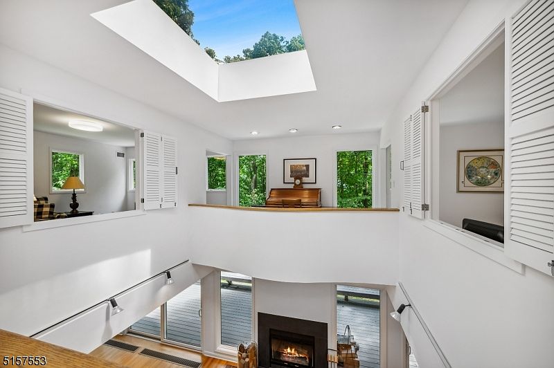 This mint condition custom built, Contemporary home has been lovingly cared for from its inception. Situated on more than 2 acres of land, this private, park-like oasis complements the design of the home. Skylights and windows throughout bring the natural light in. The main floor features an open concept floor plan which includes a family room, living room, dining room, kitchen and foyer. A wood burning fireplace acts as the focal point of the welcoming 2 story living room. The second floor includes a primary suite, complete with built-ins, en-suite bathroom, soaking tub and a large walk in closet, as well as two additional spacious bedrooms and a full bathroom. The ground level features an office, a laundry closet, full bathroom, two car garage, a cedar walk-in closet and ample storage. Some additional features of the home are a tankless water heater, a septic tank that was replaced in 2016, new A/C system (2017), two new above ground oil tanks installed (2015) and a new well water tank (2022).