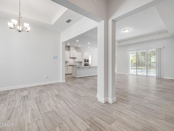 BEAUTIFUL MODERN NEW (Salt water solar heated) POOL HOME AVAILABLE NOW. This BRAND NEW 4 bedroom 3 bath 2,377 sq ft pool home is enveloped in the charm of Deland. This beautiful new home has three luxurious bathrooms combined with generous living space and stylish finishes to make living easy no matter the size of your family. With plenty of room for study, sleep and storage, this home's open-concept gathering and dining space, master retreat with expansive walk-in closet, and covered and screened pool lanai invite relaxation, encourage entertaining, and embody the essence of true indoor-outdoor living. Additional home highlights include modern chef's kitchen, quartz countertops, gas cooktop, washer and dryer, soaking tub in master bathroom. Perfect for anyone, this home is ideally positioned to enjoy Downtown Deland's quaint shopping, locally owned restaurants and cafes, and more. Additional Amenities: Energy efficient home, Smart thermostat, security system included and pool maintenance included, Stainless steel appliances, tile flooring in bathrooms & common areas, Attached 3 Car Garage, Carpeted bedrooms, quartz countertops, Dishwasher, washer and dryer, Walk-in closet, Microwave, Large backyard, Pool, Plenty of Storage, 12 ft ceilings throughout home.