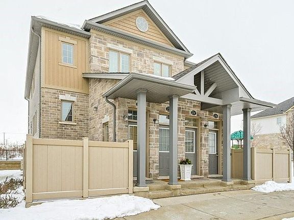 Beautiful 3 bed/2 bath condo, carpet free main floor, high end finishes throughout - kitchen features Caesar Stone counter top, backsplash, oversized island, stainless steel appliances, some porcelain flooring. Open concept dining & kitchen area, main floor laundry, bright living room with walkout to deck (no rear neighbours), and under deck storage. The upper level features a spacious primary bedroom with double closets, 2 additional bedrooms and 4 pc bath. Assigned parking convenient right front of unit. This home is ideal for first time homeowners, empty-nesters or investors. Excellent location, minutes to the 401, schools, and all amenities, also conveniently located close to Doon Heritage Village, Huron Natural Park
