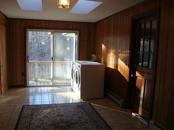 Great space in this 7 room ranch with attached two car garage and detached 20 x 24 garage with electricity, gorgeous year round sun room/family room, kitchen with dining area and sliders to family room, living room with fire place and beautiful hardwood floors, 3 bedrooms, all with good size closets and hardwood floors, Den or office off the kitchen with garage access and sliders to small deck. finished lower level with small kitchenette, three oil tanks, storage closet in unfinished walk out side of basement.