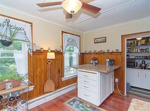 - Kit Dscrp: Pantry, Ceiling Fan(s), Kitchen Island, Chair Rail, Wainscoting