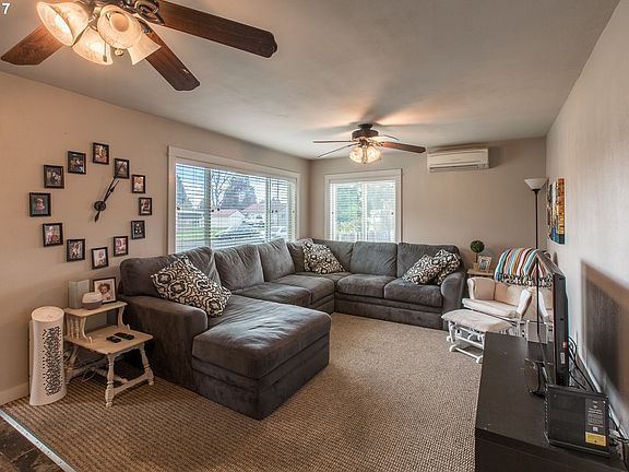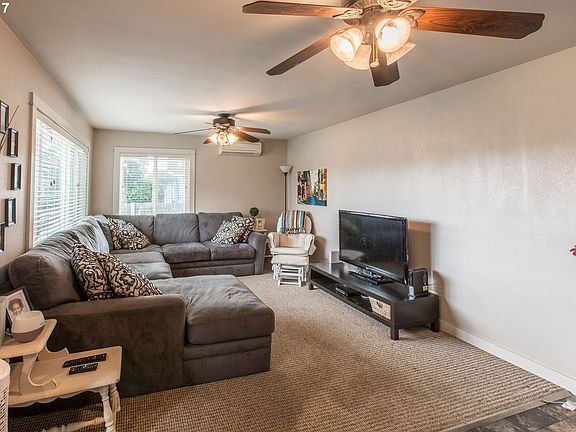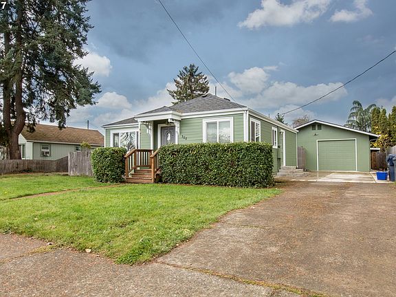 Very Cute and Clean Bungalow. Laminate floors, Tiled kitchen, new sink, faucet and countertops. Updated Light Fixtures, Ceiling Fans, Newer Roof, Gutters, Vinyl Windows, Paint. Inside utility area. New Ductless Heat pump. Stamped Concrete Covered patio. Raised garden beds. Sprinkler System. Detached garage is 23x22. Lots of parking.