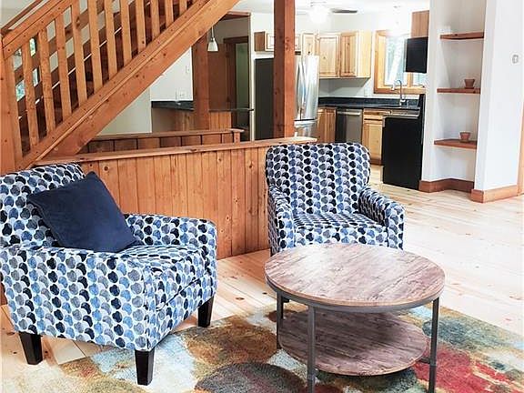 Lovely quaint Cape with the feel of a country chalet, nestled around 6.53 acres of sheer tranquility. Short walking distance to Copake Lake and Copake Country Club. Home has been updated to boast Norwegian Blue Pearl Granite Kitchen Countertops, Island and backsplashes, New cabinets, new Stainless Appliances. Sapphire Blue Granite vanity tops for two bathrooms. Lower level bathroom has been totally upgraded with new shower stall, new fixtures, lighting, and lovely pedestal sink with Stainless Steel corner Mirrored medicine cabinet. Master bedroom has new flooring, new bathroom consisting of new tub, vanity and countertop, tiled bath area, new fixtures and lighting. New ceiling fans in lower level bedrooms, laundry room. Completely refinished wide plank wood floors, Rear deck has new railing. Mechanical/retractable awning on the deck is perfect for those hot sun beaming days in the summer. There is also a hot tub. Electric baseboards have been replaced and outlets have been updated. Septic cleaned out. Front deck/porch has been upgraded. Detached two car garage is huge with upper level for storage or refinishing. Perfect all year round living or weekend getaway. Simply a wonderful country feel for all year round living or weekend getaways. Your choice. This one is a keeper! CONVENIENT TO GREAT BARRINGTON, MILLERTON AND HUDSON & LESS THAN 2.5 HOURS FROM NEW YORK CITY.