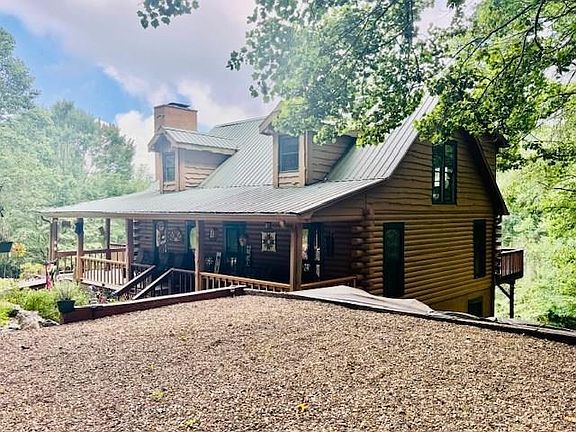 This log home is a must see. It is a piece of heaven, sit on the back deck with your favorite beverage and enjoy the majestic views. Listen to the creek sounds and watch the wildlife up close. The man of the house can enjoys the workshop below or the 77" Tv home theater! New gas furnace 2025, New HVAC 2020, new gutters with guards and many features too many to list . On the main level, you'll find two cozy bedrooms, while the upper floor boasts a private bedroom with its own scenic views. The lower level offers a fourth bedroom, providing ample space for family and guests. The inviting living room is highlighted by a beautiful stone fireplace, perfect for relaxing on cool mountain nights. Step outside onto the expansive covered porch on the upper level, where you can unwind while overlooking a lovely perennial garden. The back deck offers the perfect spot to enjoy the sounds of nature as you relax beside a winding creek — an ideal place to sip wine and soak in the fresh mountain air. Located just a short drive from Mount Airy, NC, this cabin provides easy access to I-77, making it convenient to nearby attractions and major highways. For outdoor enthusiasts, the Blue Ridge Parkway is just 3 miles away, with the charming town of Fancy Gap, Virginia, also nearby. The cabin's expert craftsmanship ensures both durability and comfort, offering a cozy home that will stand the test of time. Home comes mostly furnished with top of the line furniture. With a lush, well-maintained lawn that attracts deer and turkeys, this property offers the perfect natural setting for peace and relaxation. As part of a welcoming community, enjoy access to top-tier amenities, including a heated saltwater pool, fishing ponds, tennis courts, and a community clubhouse — all designed to enhance your mountain living experience. Whether you're looking for a full-time residence or a quiet getaway, this log cabin offers the ultimate peaceful retreat in the heart of the Blue Ridge Mountains.