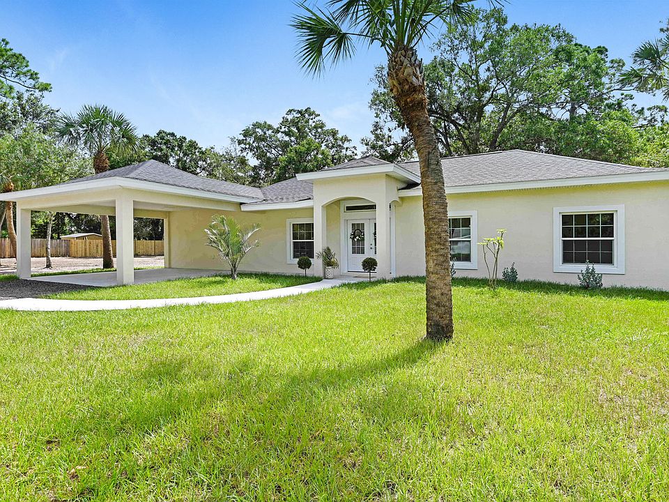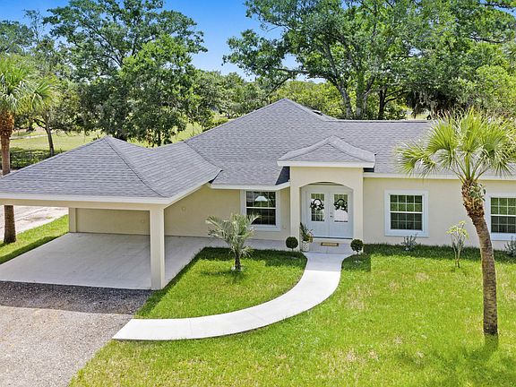 This former 1958 home on a half acre has been totally rebuilt from the ground up. This home is located at the end of a dead end street and backs up to a lovely farm. The neighborly cows and goats are regular visitors. Inside the double entry doors is open concept living with a lovely center island overlooking the great room. The owner spared no expense in the construction including all hurricane impact doors and windows, 16 seer A/C, tankless hot water heater, set up for generator, even a hurricane safe room. The entire home has commercial grade vinyl plank flooring and is even wired for cat-6 ethernet networking. No HOA allows you add a garage, pool or RV/boat pad on the cleared adjacent lot. The builder will work with you to make this your dream home.,