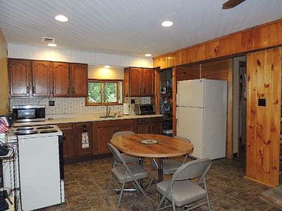 Nestled among 20 acres of land this 1,500 sq ft Cape Cod style home is perfect for the growing family or someone looking to downsize. Featuring an in-law suite on the main level of the home w/ an over-sized bedroom, kitchenette, walk in closet, renovated bathroom w/ crmc tile shower & a tranquil screened in porch area. The main home offers an open concept w/ the kitchen, dining & living room easily accessible. Centrally located wood stove offers warmth in the winter months while the monitor heating systems heats the rest of the home. A full bathroom, w/d area & plenty of storage finish the main living area. Upstairs offers 2 bedrooms, 1/2 bath & more storage! Garage is set up for welding.