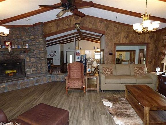 This country home features several recent renovations: New roof. granite counters, new floor coverings, new paint on exterior, large stone fireplace, vaulted ceilings, office and very nice covered deck for entertaining. The downstairs is heated and cooled and estimated in total s.f. Large unfinished room downstairs could be third bedroom. single garage with two overhead doors and dedicated workshop area. Fully fenced yard and tranquil setting make this a Rare Find!
