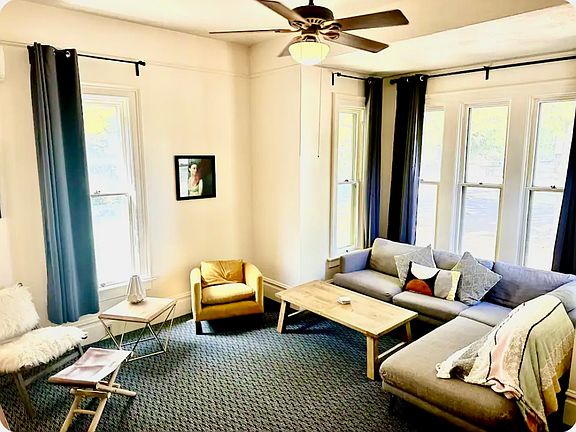 Available August 15. Historic downtown 1920's home. 4 bedroom, 1 1/2 bath with updated eat in kitchen kitchen. Tons of light and 9' ceilings. 2 onsite parking spaces and Washer and dryer included. Tenants pay eweb which averages $125 per month. Tentant pays utilities.