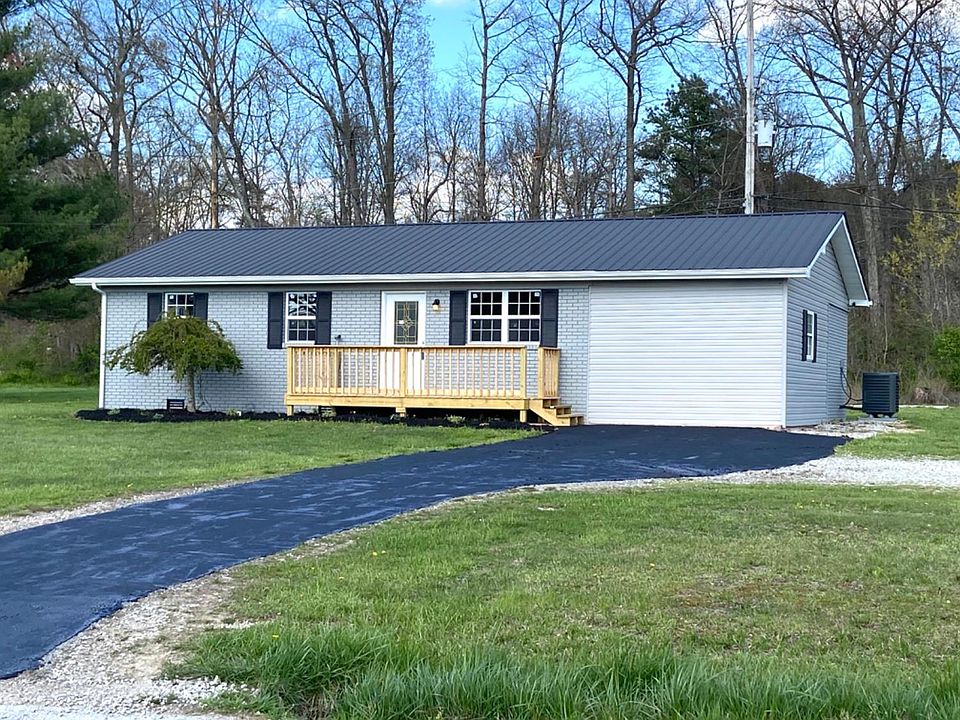 This affordable, one-level ranch has been totally remodeled with new flooring, paint, appliances, cabinets, HVAC, water heater & breaker box, windows & doors & decks. Featuring living room, family room (that could be 4th bdr), 3 bedrooms, large tiled bath with double vanity & 5' step-in shower, two large decks and a level, unrestricted one acre lot. This property is move-in ready!