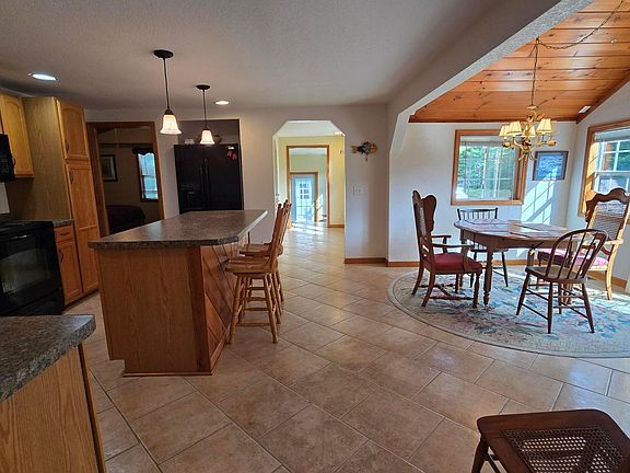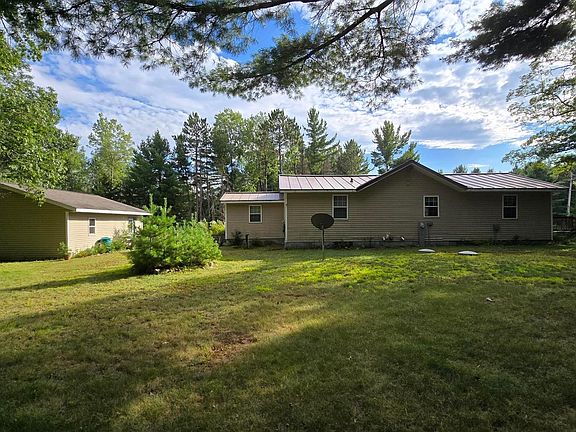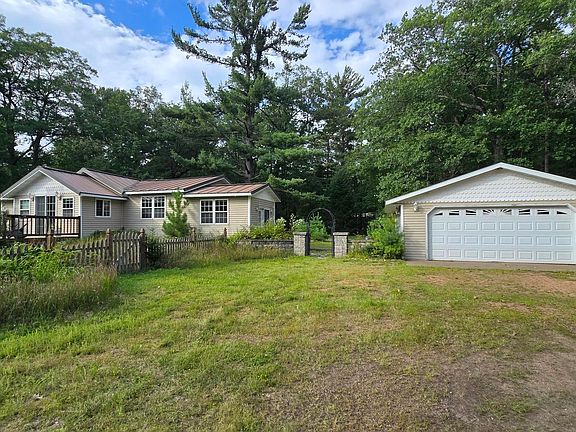 Country setting with large partially fenced yard. Spacious 3 bedroom home with 2 full baths, office and lower level rec room. The open kitchen and dining area has ceramic tile, tons of cabinets, snack counter, sliding doors to deck and an extra "dry bar" with even more counter/storage cabinets. Living room has a gas stone fireplace and another set of sliding doors to a second sundeck. The home has low maintenance vinyl siding and metal roof and there is a 2 car detached garage. Conveniently located between Three Lakes and Eagle River and on the snowmobile and ATV trails!