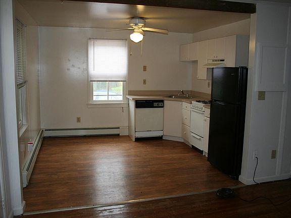 This one bedroom, one bath unit is located on the 1st floor with it's own private entrance. Free off street parking and free shared laundry. Please note that new flooring has just been installed throughout the unit. New pictures to follow! Owner pays for water, snow removal in parking lot, trash removal and lawn care. Tenant responable for gas, electric, heat, hot water and snow removal from steps. First month, last month and security due for move in. One year lease. Month to month after 1st year.